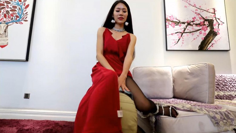 一只脚插着嘴、一只脚把m的头一次次的踩下去,就m羞辱的含着丝袜脚磕头;