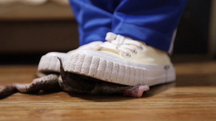 傻白甜女生栗子第一次拍摄,对镜头很晕,更惧怕牛蛙。正在适应的过程,最后还是把牛蛙踩死了。虽然是第一次拍摄但暴露出话痨的本性,哇啦哇啦不停地对摄像说话,十万个为什么。