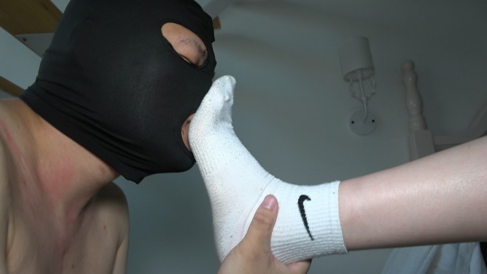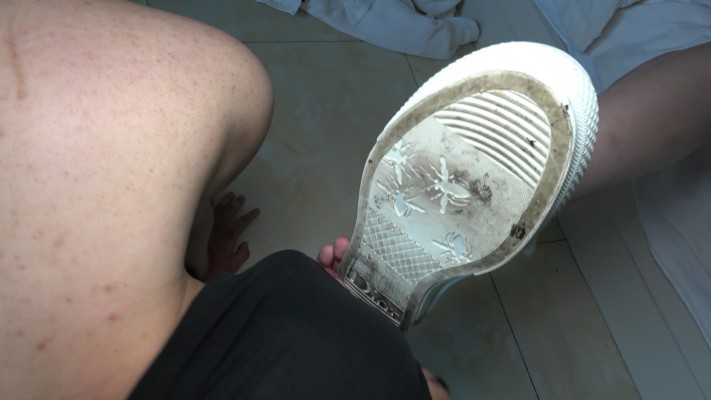 超模艾琳帆布鞋暴力踢裆,下脚绝不留情,踹头,踹肚子,舔脏鞋,闻臭白棉袜脚,舔脚等